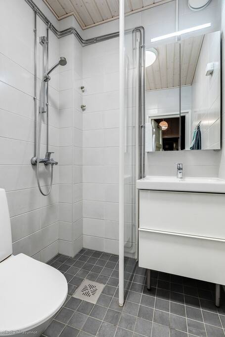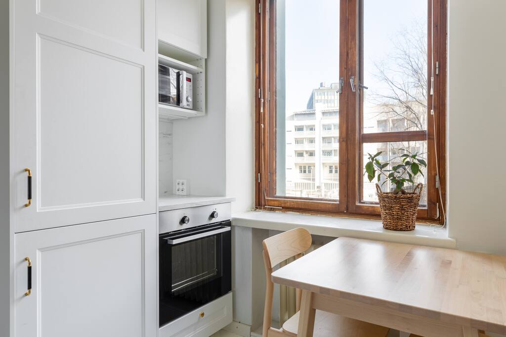 The apartment is 38 sqm, with a separate bedroom and kitchen/living room. There is a double bed (160cm), a twin bed (80cm) and a pull-out sofa bed (140cm) with an additional foam mattress to ensure a cosy sleep. The windows are facing the backyard, so the apartment is very peaceful and quiet. In the kitchen / living room : Cooking utensils and dinnerware for 6 Electric kettle and coffee maker Complimentary tea bags and coffee powder Microwave and toaster 3 hob stove and oven Fridge and freezer Dishwasher and detergent Table and 4 chairs 140cm foam mattress topper on sofa-bed, sheets, duvet and pillows to comfortably sleep 2 people Closet with both shelves & hangers for your use Bedroom: 160cm bed with foam mattress, possible to divide into 2x 80cm single beds An 80cm wide twin bed 43 inch full-HD TV with Netflix Cotton sheets for a good night’s sleep Desk and desk chair Chest of drawers Extension cord and lamp Room darkening curtains to keep out the midnight sun Bathroom: Shower with glass wall Washing machine and dryer with complimentary detergent Complimentary shower gel, shampoo & conditioner Premium hair dryer for fast drying Bath towels and hand towels Ironing board and iron For babies (added when an infant is included in the booking): Travel crib with foam mattress, pillow, duvet, linen High chair Other amenities: Blazing fast WiFi - 100 Mbps fibre-optic connection Multiple plug points for charging Additional keys available upon request
